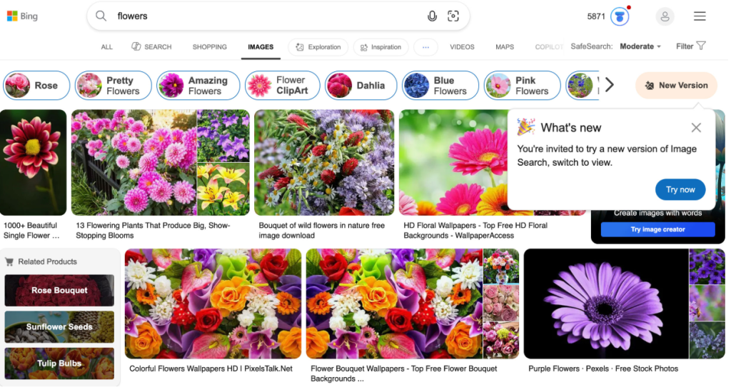Microsoft, Bing’in görsel arama deneyimini yapay zeka ile yeniden şekillendiriyor. Kullanıcılar artık Bing Görseller’de arama yaparken “Yeni Sürüm” butonuyla karşılaşabiliyor. Bu butona tıklandığında yapay zeka devreye girerek en alakalı görsel sonuçları analiz ediyor, kategorize ediyor ve özenle seçilmiş bir düzende sunuyor.