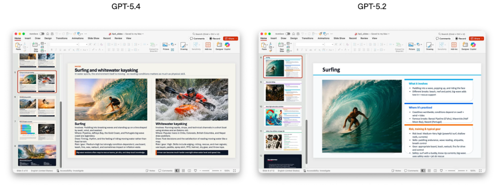 GPT-5.4, 44 farklı meslek grubunu kapsayan GDPval testinde sektör profesyonelleriyle karşılaştırıldığında %83 oranında eşit ya da üstün performans sergiledi (önceki modelde bu oran %71’di). Elektronik tablo modelleme testinde %87,5 başarı oranına ulaşırken yatırım bankacılığı düzeyindeki görevlerde de önceki versiyona kıyasla belirgin ilerleme kaydedildi.
